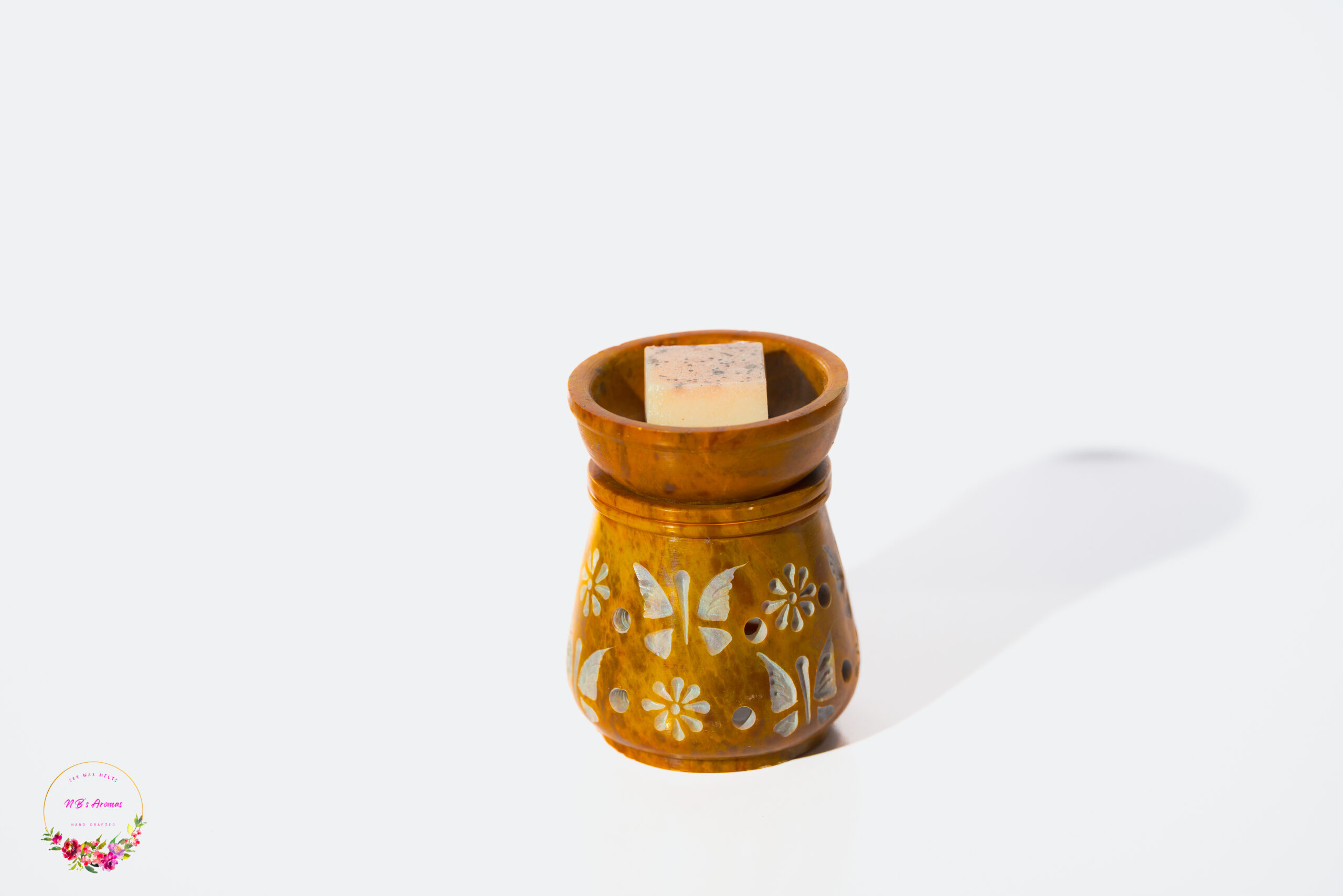 - Design: Hand-sculpted soapstone with butterfly and carved hole detailing.